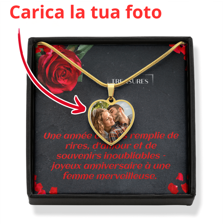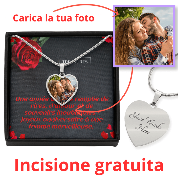 Rendi il suo compleanno indimenticabile con un regalo unico come il vostro legame. Questa splendida collana con ciondolo a cuore e foto personalizzata è il ricordo perfetto – ideale per tua moglie, la tua migliore amica o una persona che significa tutto per te.