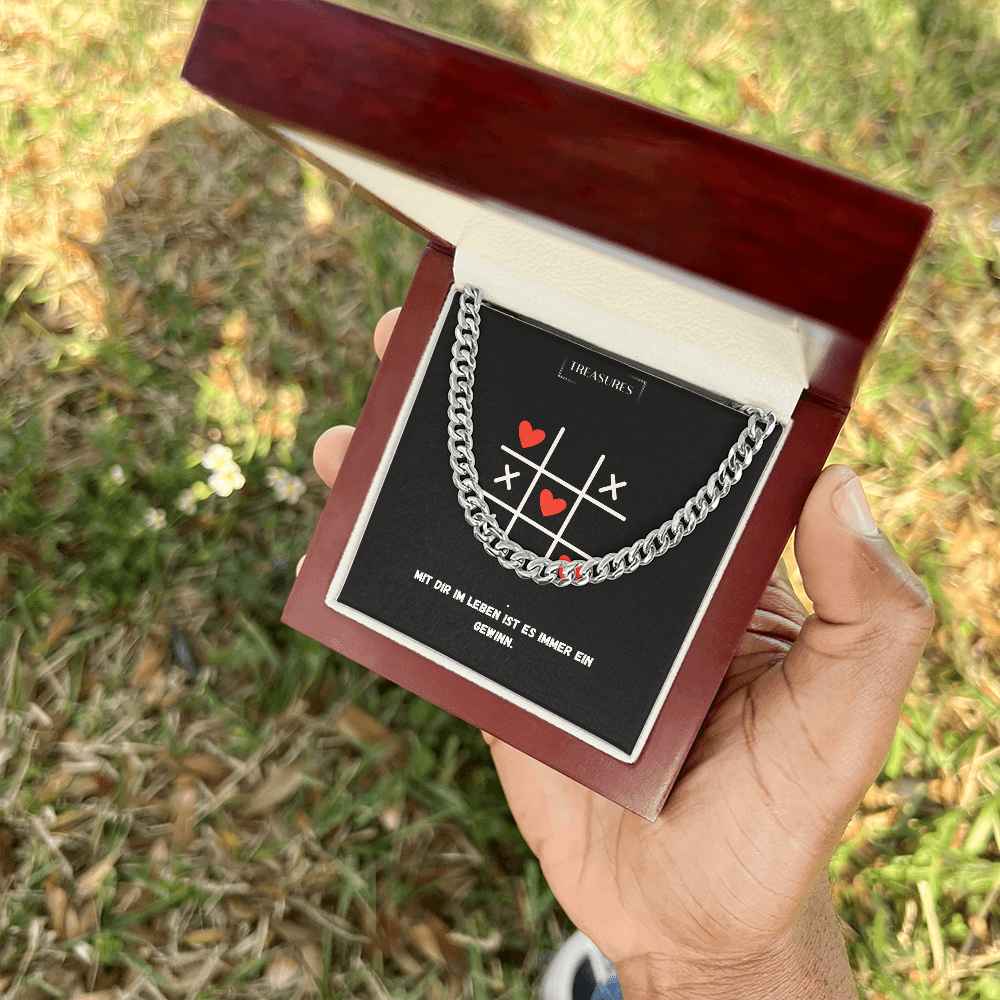 Stell dir vor, wie er diese markante Cuban Link Chain erhält – ein Zeichen von Stärke, Selbstbewusstsein und zeitlosem Stil. Diese Halskette ist mehr als ein Accessoire; sie ist ein Symbol deiner Bewunderung und eurer beständigen Verbindung.